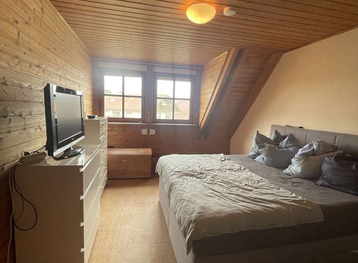 Im Obergeschoss finden Sie ein weiteres Schlafzimmer sowie ein vielseitig nutzbares Kinderzimmer oder Arbeitszimmer. Auch in diesem Bereich sorgt ein zusätzlicher Kamin für ein behagliches Raumklima. Das Badezimmer auf dieser Etage ist mit einer komfortablen Eckbadewanne sowie einer separaten Dusche ausgestattet, um Ihren Bedürfnissen gerecht zu werden.