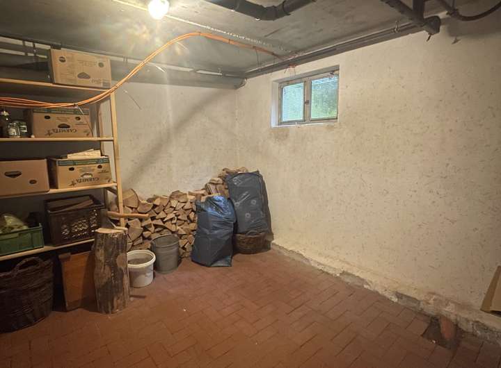 Der Keller bietet großzügige Lagermöglichkeiten, darunter zwei separate Kellerräume, die ideal für die Lagerung von Holz und anderen Vorräten sind. Ein weiterer großer Raum steht Ihnen als zusätzlicher Stauraum zur Verfügung.