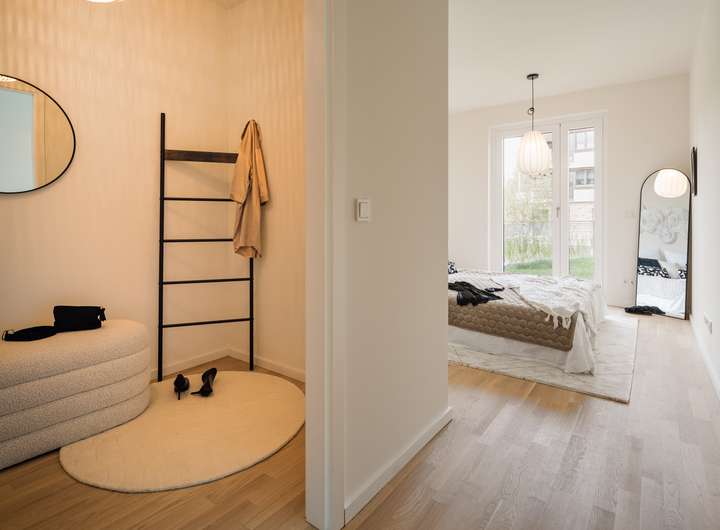 Das Schlafzimmer ist ein komfortabler Rückzugsort und verfügt über eine großzügige Ankleide, die ausreichend Platz für Ihre Garderobe bietet. Auch das Tageslichtbad besticht durch seine hochwertige Ausstattung. Zudem bietet ein praktischer, separater Abstellraum innerhalb der Wohnung bietet zusätzlichen Stauraum und ist ideal für Waschmaschine und Trockner.