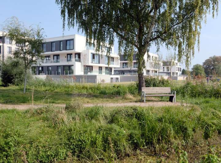 So gibt es in und um die drei Häuser der ELEMENTS viel zu entdecken: Vom Zweischichtparkett in den Wohnbereichen aus Echtholz, Eiche natur, im Schiffsverband verlegt – bis hin zu den Grünflächen außen, die nicht einfach nur gestaltet sind, sondern von einer Landschaftsarchitektin designed wurden.
