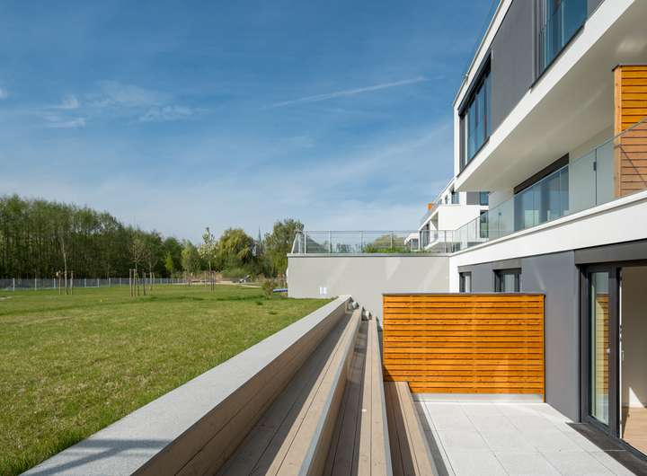 Die repräsentative Architektur der drei Häuser, die Ausrichtung der Terrassen und Balkone und die mit Augenmaß gestalteten Grundrisse stehen für den hohen Anspruch an exklusiver Lebensqualität.