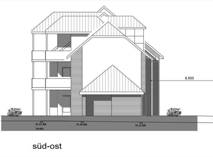 - Dach: Tondachpfannen engobiert (diffusionsoffen), anthrazit-grau oder schwarz
