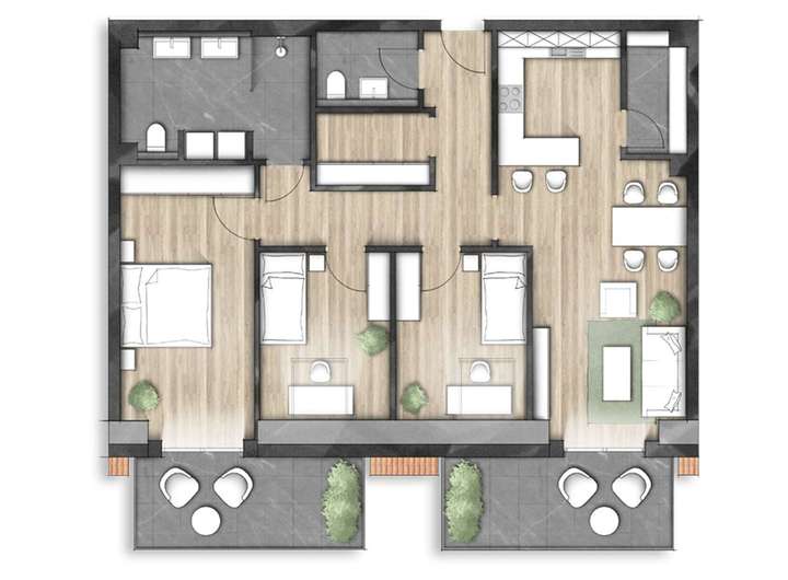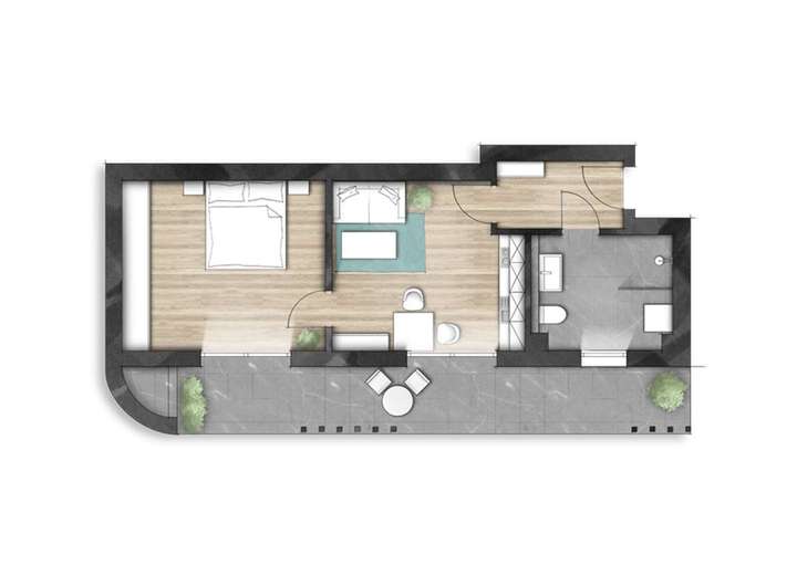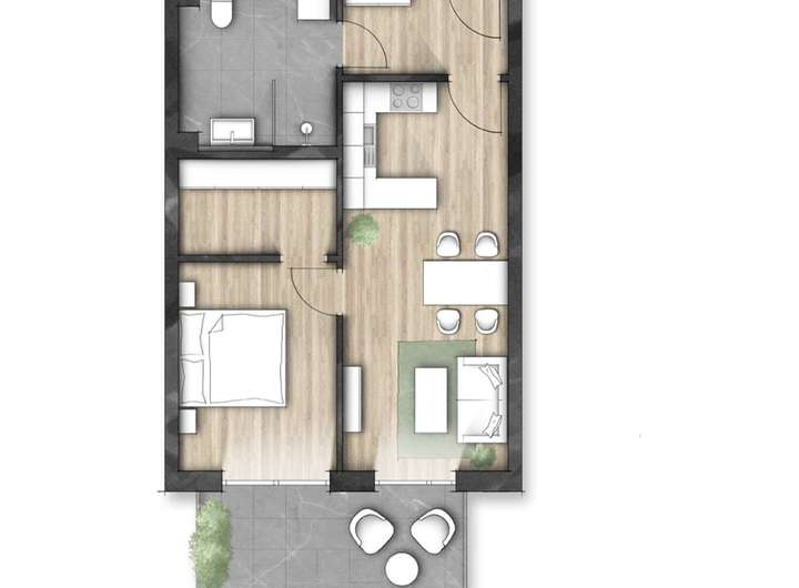 Das dargestellte Bild- und Planmaterial dient allein der Veranschaulichung und ist unverbindlich. Die Abbildungen zeigen zum Teil Sonderausstattungen / Eigenleistungen. Soweit Abbildungen Herstellerangaben erkennen lassen, dienen diese allein der Illustration. Für die Nutzbarkeit von Räumen zu dem im Prospekt dargestellten Zweck wird keine Gewähr übernommen. Änderungen der Planung und Ausführung sowie Abweichungen von den Darstellungen bleiben ausdrücklich vorbehalten. Bei allen Entfernungs- und Flächenangaben handelt es sich um circa-Angaben ohne Gewähr.