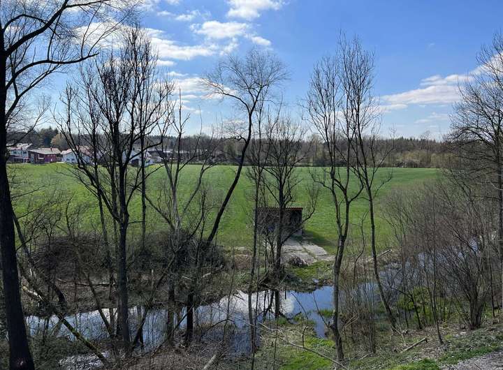 + Ruhiger und natürlicher Bach (Memminger Ach) am Hangfuß des Projekts.