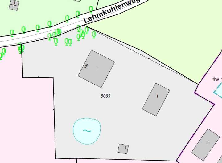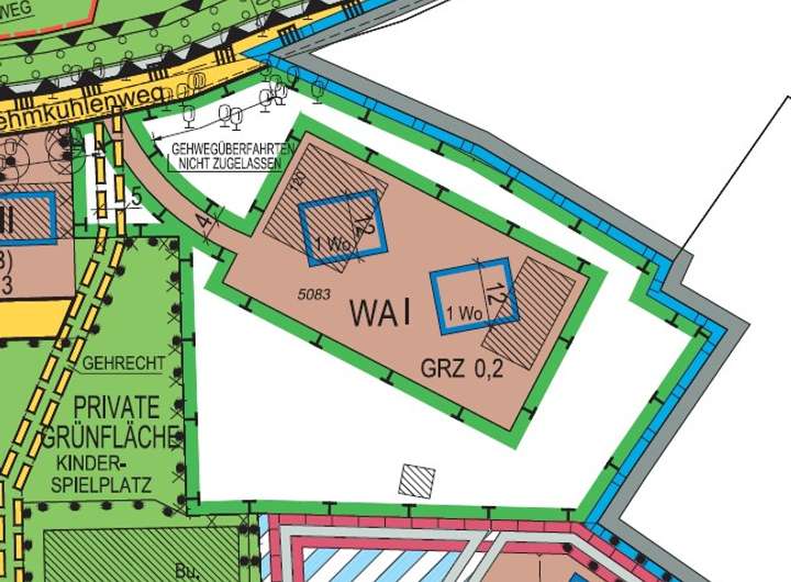 Im Umfeld der Liegenschaft entsteht ein neues Wohngebiet mit lockerer Bebauung, die sich an der bestehenden Bebauung orientiert. Der aktuelle Bebauungsplan weist Teile des Grundstücks als Wohngebiet (WA I) aus.