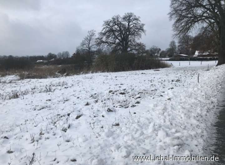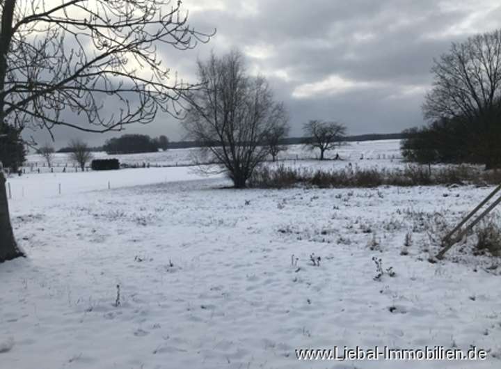 Vom aus Haus schauen Sie über das eigene Grundstück in Richtung Lenne Park. Das Grundstück ist leicht abschüssig. Zufahrt von der Dorfstraße.