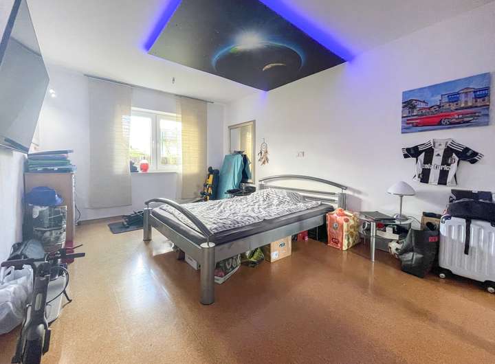 Im Rahmen des Anbaus ist eine Einliegerwohnung mit zwei Zimmern, moderner Küche und hellem Tageslichtbad entstanden. Die moderne Küche, bietet alles, was für den täglichen Bedarf benötigt wird. Das helle Tageslichtbad ist mit einer komfortablen Eckbadewanne ausgestattet und lädt zum Entspannen ein. Die zwei in etwa gleich großen Zimmern bieten vielseitige Nutzungsmöglichkeiten, ob als Schlafzimmer, Büro oder Gästezimmer. Die Wohnung hat einen separaten Zugang, der sich auf der gegenüberliegenden Seite des Hauses befindet, was zusätzliche Privatsphäre für die Bewohner gewährleistet. Diese Einliegerwohnung eignet sich ideal als eigenständige Wohneinheit für Gäste, Familienmitglieder oder zur Vermietung.