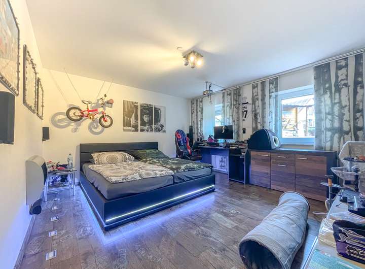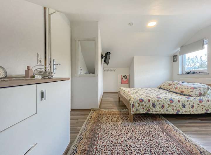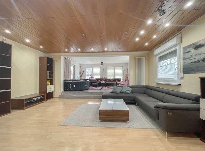 Dieser ursprünglich im Jahr 1971 erbaute Bungalow wurde 2010 umfassend modernisiert und umgebaut. Im Zuge des Umbaus wurde das Dachgeschoss aufgestockt und mit Gauben versehen, wodurch zusätzlicher Wohnraum entstanden ist. Das Objekt wurde zuletzt als großzügiges Generationenhaus mit vier separaten Wohneinheiten genutzt, ideal für Familien, die in engem Kontakt leben möchten, aber dennoch Wert auf Privatsphäre legen.