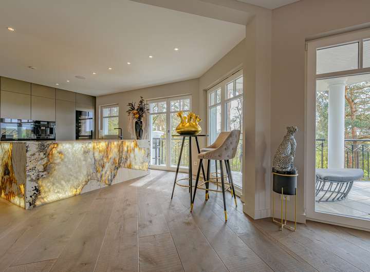 Mit großem Aufwand und viel Liebe zu Details wurde die Villa in den Jahren 2021/2022 im Wohnbereich unter Verwendung sehr hochwertiger Materialien und Ausstattung um- und ausgebaut.