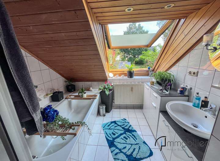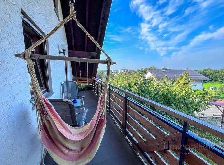 Ein besonderes Highlight des Hauses ist der einladende Balkon im Dachgeschoss, von dem aus Sie einen herrlichen Blick auf die grüne Umgebung genießen können.