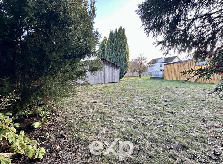 Schönes rechteckiges Grundstück in zweiter Linie mit Baumbestand und einer großen Gartenhütte. Zufahrt mit eigener Flurnummer zur Hälfte. Kein Bauzwang!