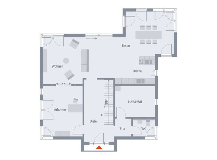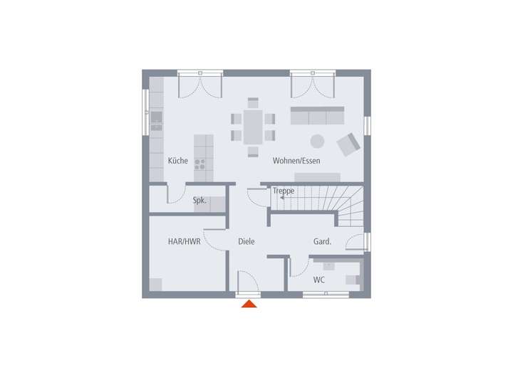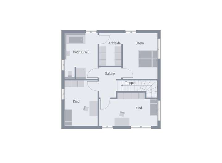Dieser Architektenentwurf ist ein Planungsvorschlag und dient der Inspiration und Orientierung. Grundrisse, Architektur-Extras, Ausbau- und Effizienzhaus-Stufen werden individuell an Ihre Wünsche und Bedürfnisse angepasst.