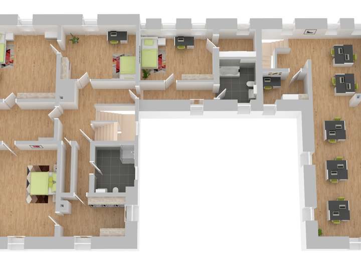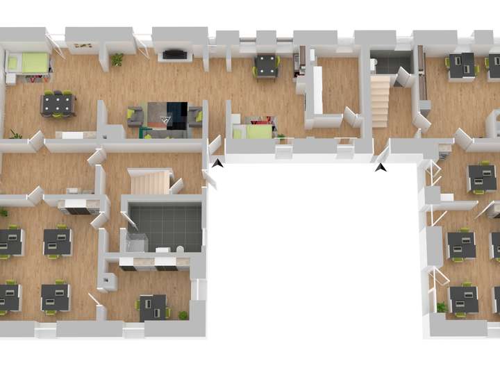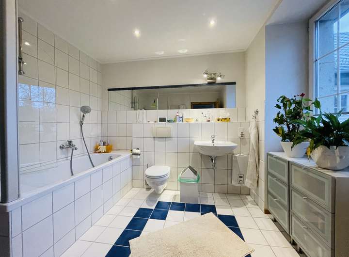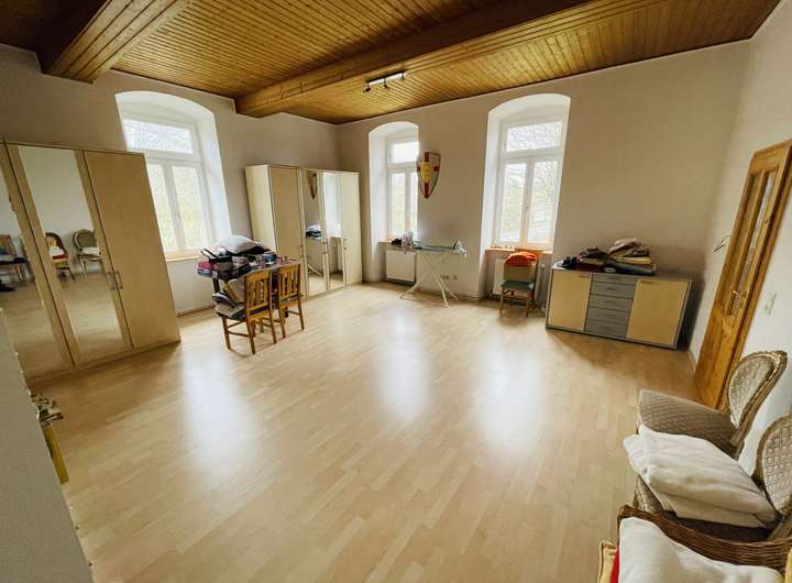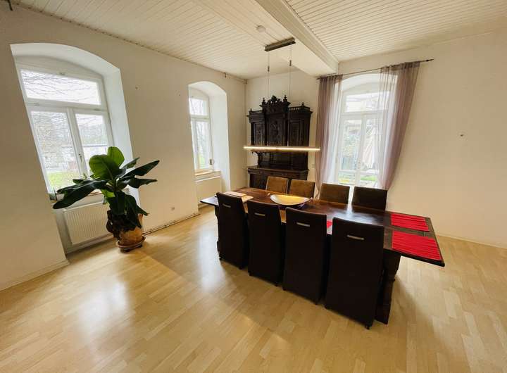 Das Objekt besteht aus drei Flügeln, hier sollen aktuell 2/3 des Gebäudes, ca. 380qm, vermietet werden. Es besteht ein eigener Eingang, eine getrennte Versorgung, mit Strom und Gas, eine separate Heizung und eine alleinige Nutzung des Gartens, von ca. 2.400qm. Das verbliebene Drittel, ca. 180qm ist auch komplett separat und getrennt, ein eigener Eingang, mit getrennter Versorgung und eigener Heizung. Man könnte eigentlich sagen, dass es ein Doppelhaus ist. Die zweite Haushälfte ist aktuell gewerblich vermietet. Ich habe die letzten Jahre selbst in dem größeren Hausteil gewohnt und kann sagen, das diese gewerbliche Vermietung überhaupt nicht einschränkt.