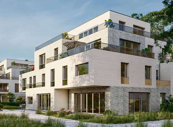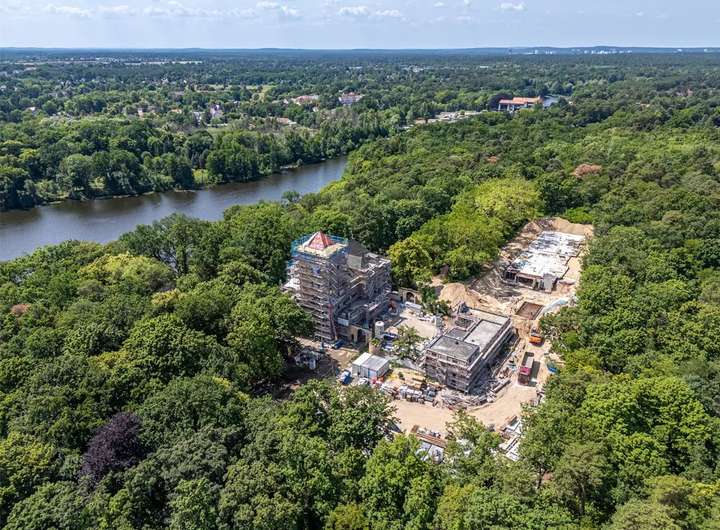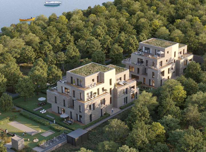 In Kleinmachnow bei Berlin entstehen zwei moderne Neubauten mit insgesamt 19 Wohnungen, die sich harmonisch in das historische Ensemble der Neuen Hakeburg einfügen. Die Wohnflächen variieren zwischen 58 und 172 m², bieten 2 bis 5 Zimmer und garantieren Privatsphäre sowie einen herrlichen Ausblick ins Grüne und auf den Machnower See. Eine Tiefgarage mit 63 Stellplätzen sorgt für ausreichend Parkmöglichkeiten. Zu den Annehmlichkeiten zählen ein gemeinsamer Wellness- und Fitnessbereich. Naturschutz und Nachhaltigkeit stehen im Fokus, mit einem großen angrenzenden Naturschutzgebiet und einer Steganlage am Ufer des Sees.
