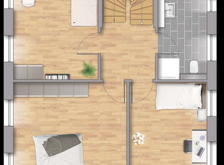 - Massives Eichenparkett in den Wohn- und Schlafräumen