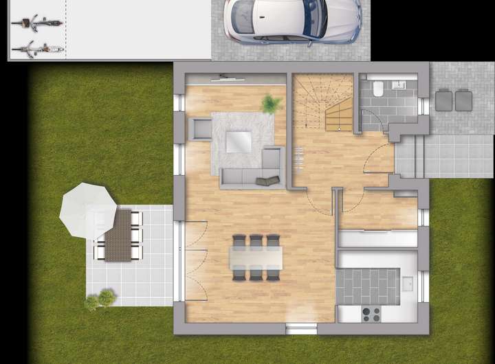 - Terrasse mit direktem Zugang zum eigenen Garten