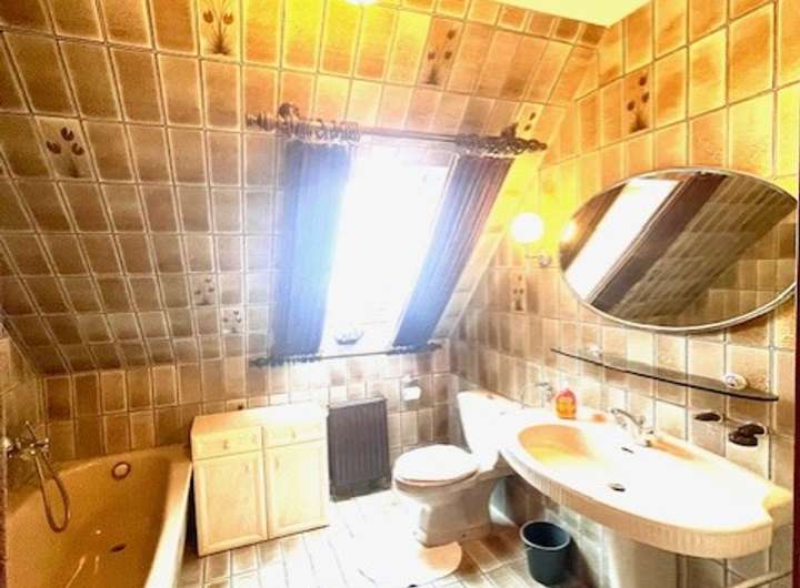 Im Wohnzimmer befindet sich Parkett -Fußboden, die anderen Räume sind mit Teppichboden oder Fliesen ausgestattet. Das Dachgeschoss ist überwiegend mit Teppichboden ausgestattet.