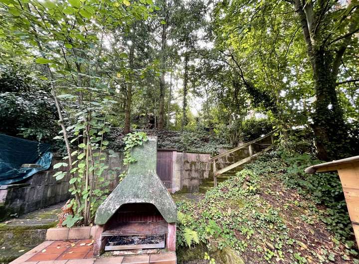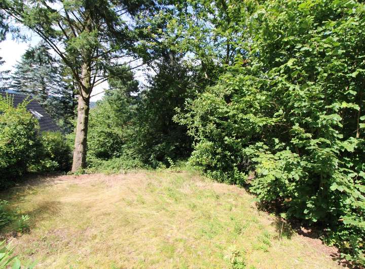 Es umfasst eine Gesamtfläche von circa 1.206 m² und ist in mehrere Ebenen und ein Waldstück unterteilt.