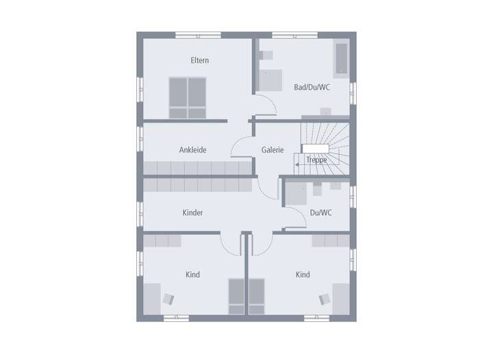 Dieser Architektenentwurf ist ein Planungsvorschlag und dient der Inspiration und Orientierung. Grundrisse, Architektur-Extras, Ausbau- und Effizienzhaus-Stufen werden individuell an Ihre Wünsche und Bedürfnisse angepasst.