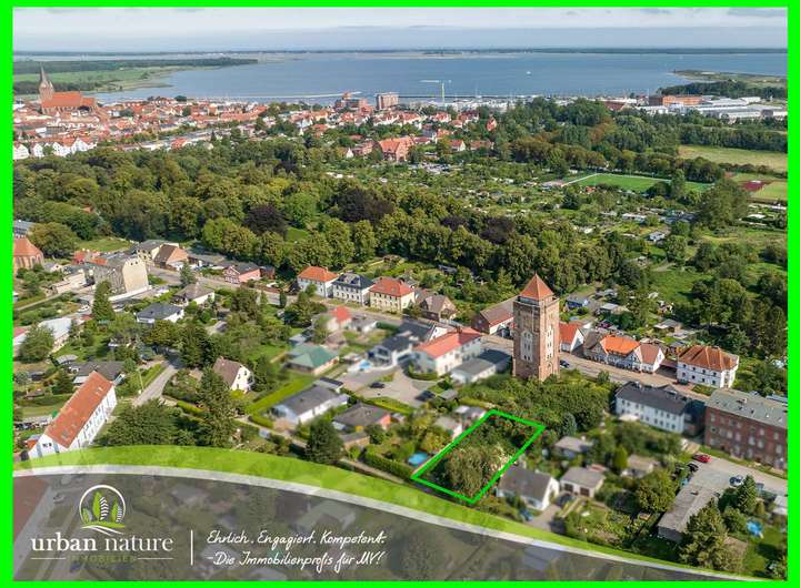 Barth ist eine charmante Stadt an der südlichen Boddenküste, bekannt für ihre historische Altstadt und die malerische Lage am Wasser. Das Grundstück liegt in einer ruhigen Gegend, nur wenige Gehminuten vom Stadtzentrum entfernt. Der Wasserturm, der direkt hinter dem Grundstück liegt, verleiht der Umgebung eine besondere Atmosphäre und ist ein besonderes Wahrzeichen der Stadt.