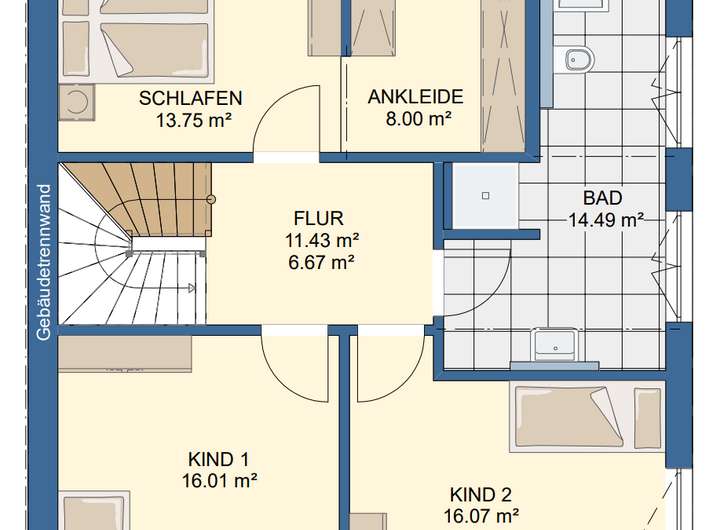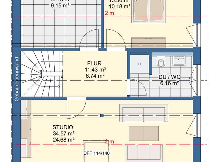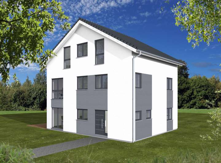 Das ebenerdiges Grundstück kann mit eine moderne, zweigeschossigen Doppelhaushälfte bebaut werden. Perfekt für ein KAMPA Haus der Architekturlinie Lanos_DH. Das Bauvorhaben befindet sich noch in der Planphase, die hier gezeigte Hausauswahl soll Ihnen lediglich als Inspiration dienen.