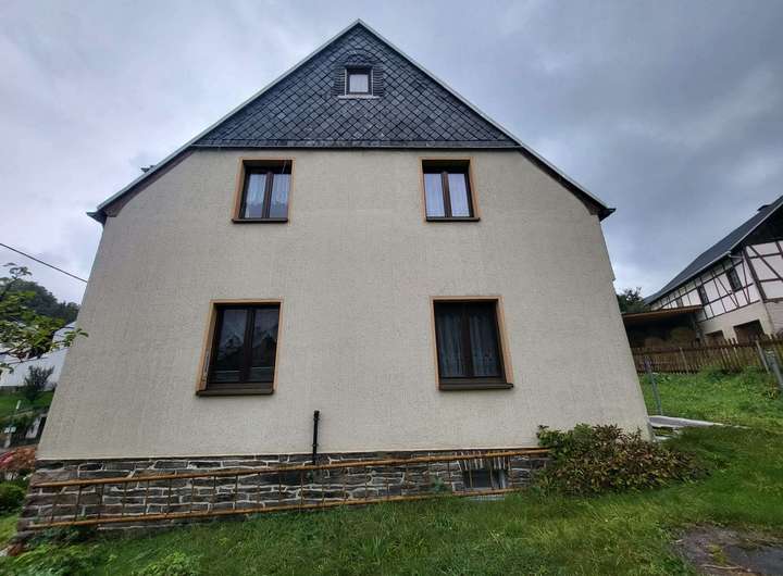 Die Immobilie befindet sich im Ortsteil Neundorf von Thermalbad Wiesenbad, einer charmanten Kleinstadt im Erzgebirge. Neundorf zeichnet sich durch seine ruhige und naturnahe Lage aus, umgeben von einer idyllischen Landschaft. Das Haus selbst liegt in einer ruhigen Seitenstraße, geprägt von Einfamilienhäusern und gepflegten Gärten. Hier herrscht eine angenehme und familienfreundliche Wohnatmosphäre. Einkaufsmöglichkeiten des täglichen Bedarfs, Bäckereien und kleinere Geschäfte sind bequem zu erreichen. In der näheren Umgebung gibt es zudem Kindergärten und Grundschulen. Weiterführende Schulen und weitere Einkaufsmöglichkeiten finden sich in den benachbarten Städten wie Annaberg-Buchholz, das nur etwa 10 Autominuten entfernt liegt. Die B95 verbindet Neundorf mit wichtigen Städten wie Chemnitz (ca. 30 Minuten Fahrzeit) und Annaberg-Buchholz. Öffentliche Verkehrsmittel sind in Form von Busverbindungen ebenfalls vorhanden.