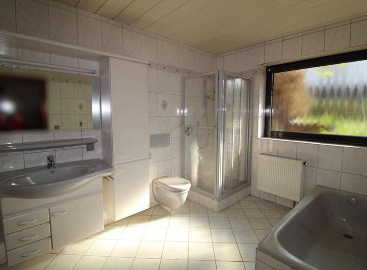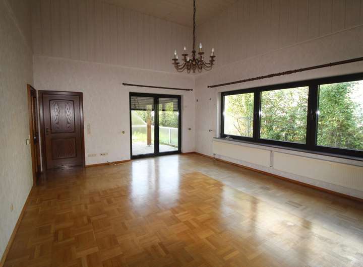 Die Hauptwohnung im Erdgeschoss mit insgesamt ca. 125 m² Wohnfläche bietet 3 Zimmer, eine Küche mit angrenzendem Wirtschaftsraum sowie ein großes Tageslichtbad mit Badewanne und Dusche. Vom sehr großen Wohnzimmer aus haben Sie Zugang auf die überdachte Terrasse.