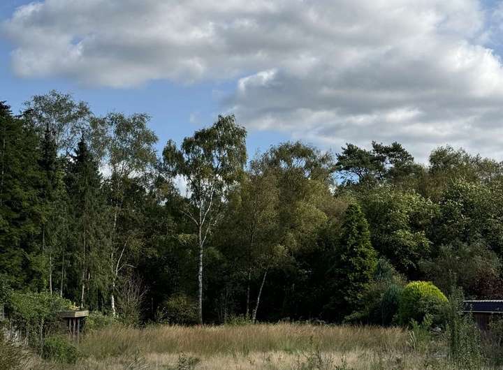 Das Grundstück liegt ruhig gelegen in einer wenig befahrenen Straße direkt am Waldrand.