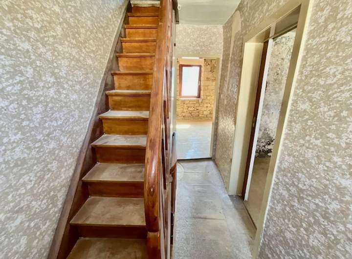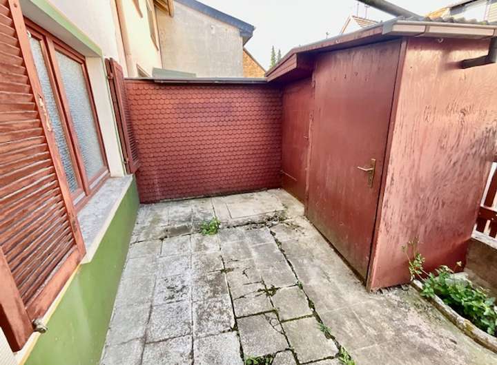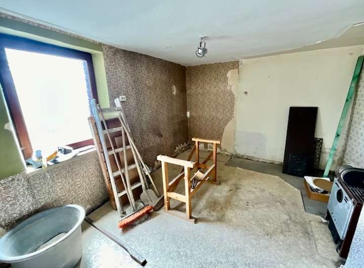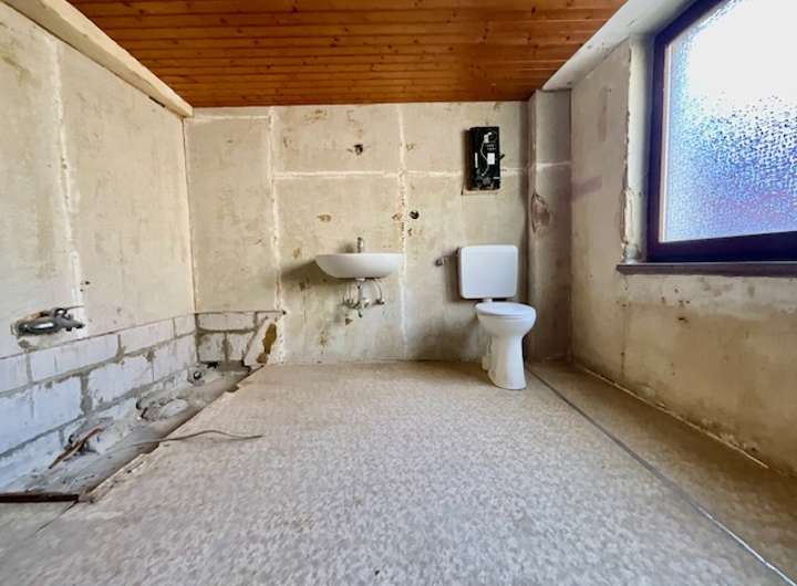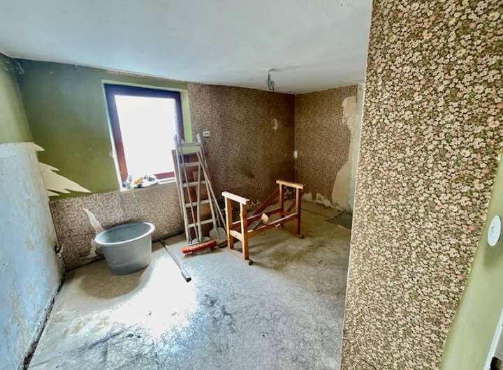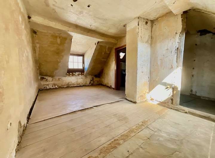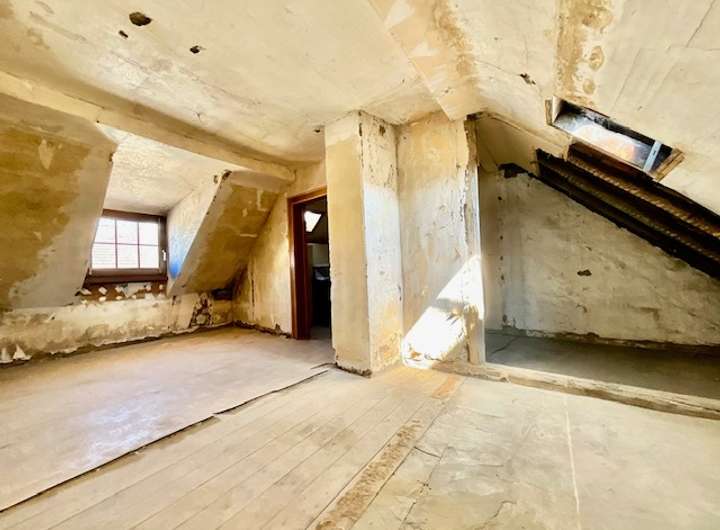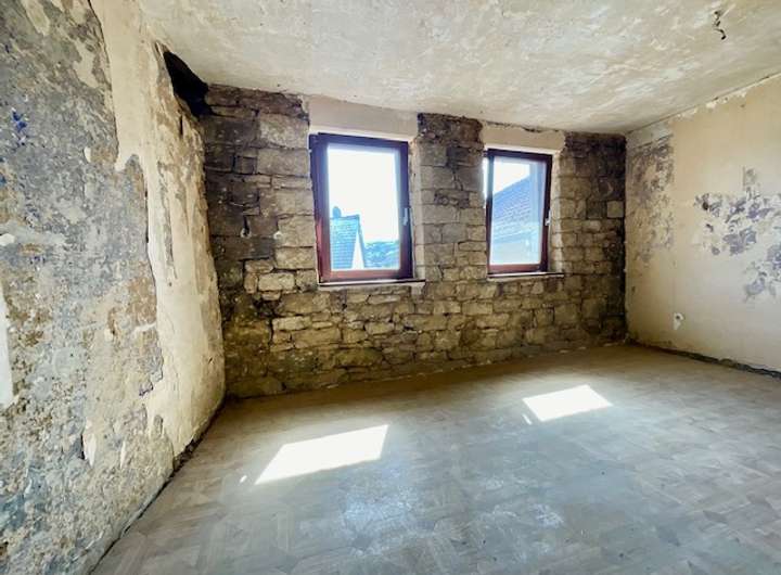 Vor dem Hauseingang befindet sich auf der rechten Seite eine kleine Terrasse, die einen gemütlichen Außenbereich bietet und zum Entspannen einlädt. Die Immobilie eignet sich ideal für Handwerker oder Individualisten, die Freude daran haben, ein historisches Gebäude nach eigenen Vorstellungen zu gestalten und zu modernisieren.