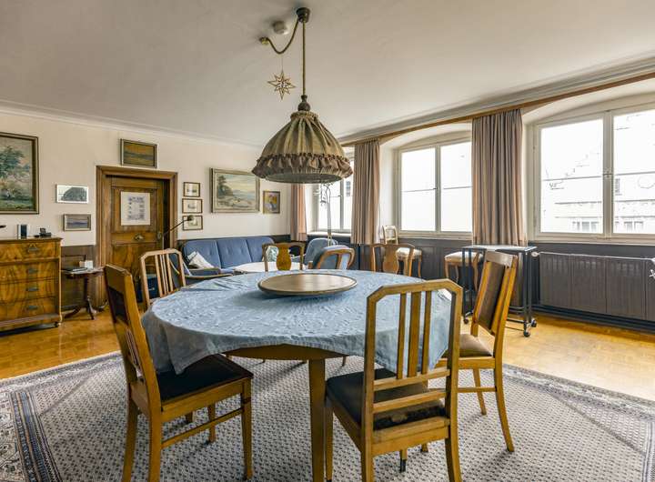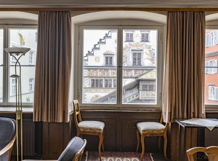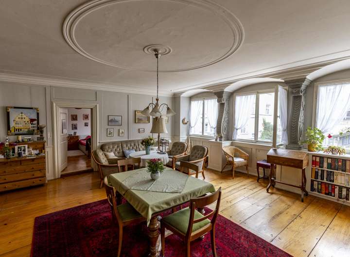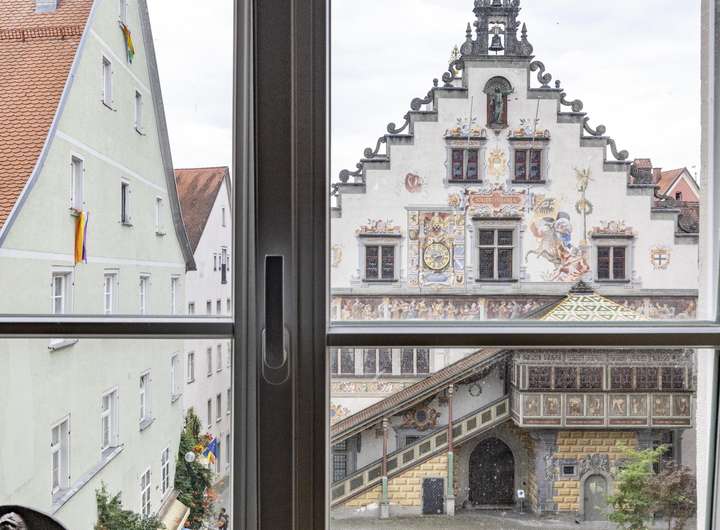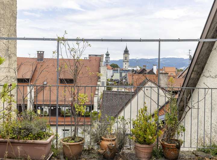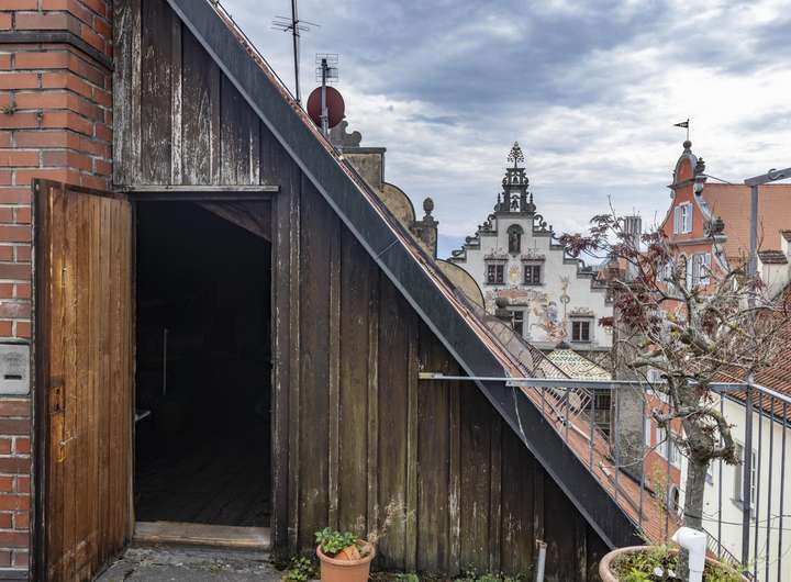 Das beeindruckende Eckhaus kann in erster Linie mit seiner erhabenen Lage punkten. Die Ausrichtung direkt nach Süden und der freie Blick auf Lindaus Wahrzeichen, das Alte Rathaus sind einzigartig. Der Schweifgiebel und die seitliche Aufzugsgaube sind typisch für die historische Altstadt der Insel im Bodensee.