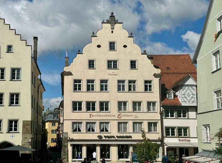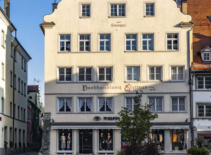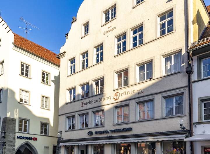 Dieses ehemalige Bürgerhaus, ursprünglich aus drei Häusern im 15./16. Jahrhundert erbaut, prägt seit dieser Zeit massgeblich das Bild der Maximilianstrasse, Lindaus pittoresker Fussgängerzone. In prominenter Lage direkt gegenüber des Rathauses zählt es sicher zu einem der imposantesten Häusern auf der Lindauer Insel. Bestehend aus vier Etagen, darüber ein Dachboden und Spitzboden, sowie einem Keller hat das Haus eine Gesamtfläche von 800 ca. qm Wohn - und Gewerbefläche.