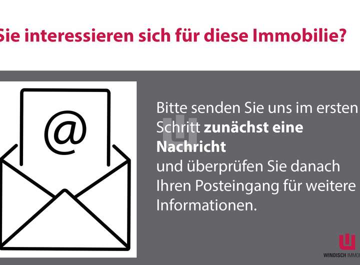 WINDISCH IMMOBILIEN bietet neue Objekte zunächst den registrierten Suchkunden an. Dies bietet für Sie den Vorteil, dass Sie einen zeitlichen Vorsprung gegenüber den nicht registrierten Suchenden haben. Sie werden über das Immobilienangebot durch WINDISCH IMMOBILIEN informiert, schon bevor es in den Internetportalen platziert wird. Registrieren Sie sich hierfür unter https://windisch-immobilien.de/registrierung/