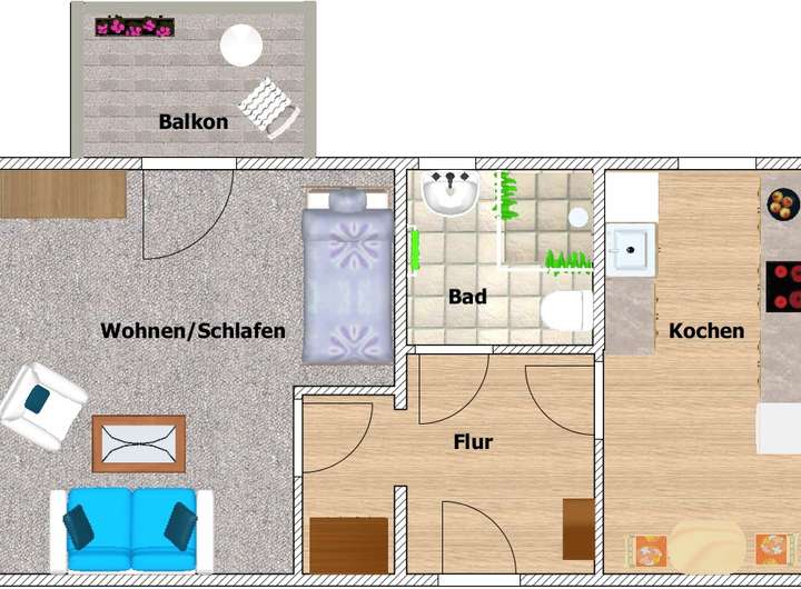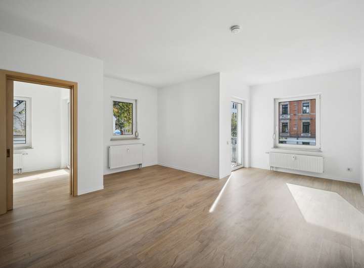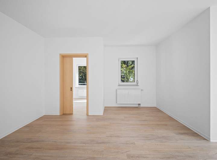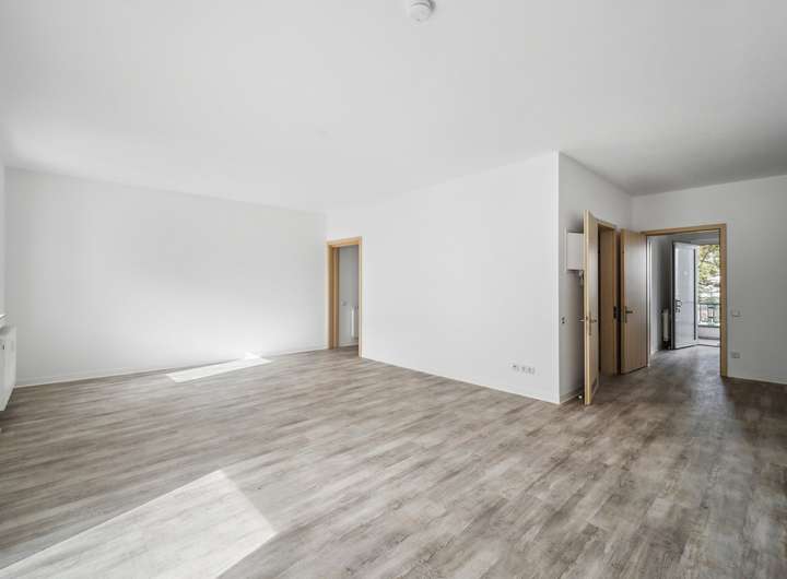 Die Wohnung wird übergeben im frisch gestrichenen Zustand mit neuem Bodenbelag aus Kunsttoff in Holzoptik.