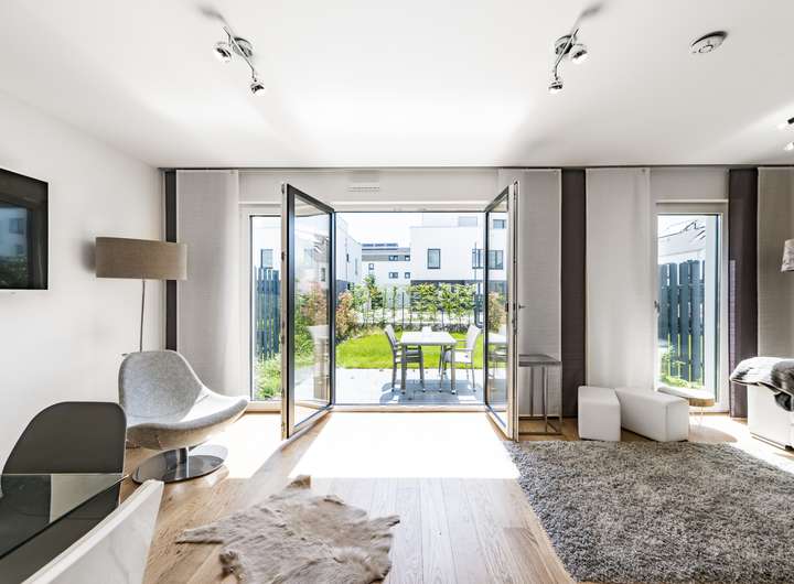 Ausgehend vom Erdgeschoss erleben Sie das neue Raumgefühl: Wohnen. Essen, Kochen – das alles ohne Schranken und ineinander übergehend. Auf dieser Ebene kommt man gerne zusammen und hat mit durch die Terrasse und den großzügigen Garten eine Erweiterung des Lebensraums in petto.