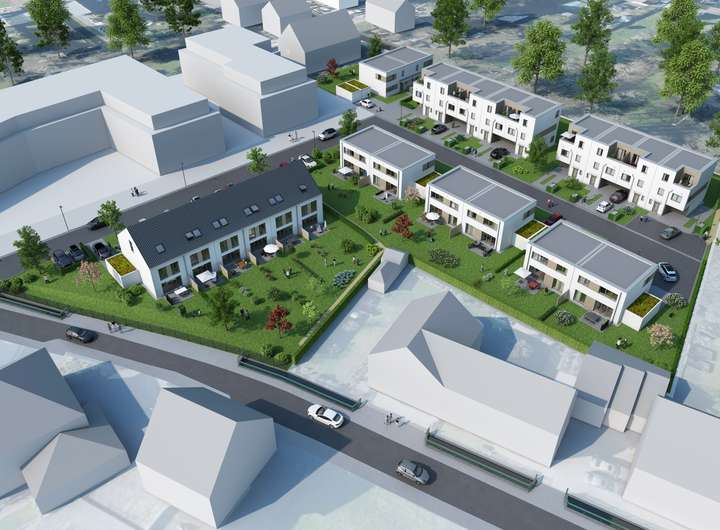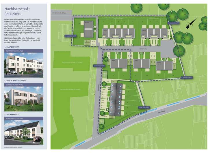 Die Häuser im neuen Wohnquartier „Doverener Mühle“ befinden sich an einer neu entstehenden Stichstraße abgehend vom Dammweg im Hückelhovener Ortsteil Doveren. Das kleine aber feine Neubau-Areal wird verkehrsberuhigt erschlossen und liegt im Grünen leicht abgesetzt von der Straße.