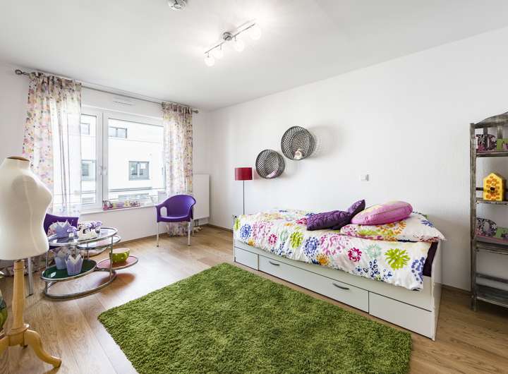Im Obergeschoss warten drei nahezu gleichgroße Zimmer und ein modernes Tageslichtbad mit bodengleicher Dusche sowie Badewanne auf die künftigen Bewohner. Mit großen, Fensterflächen, teils mit bodentiefen Elementen, ist für ein lichtdurchflutetes Wohnerlebnis gesorgt.