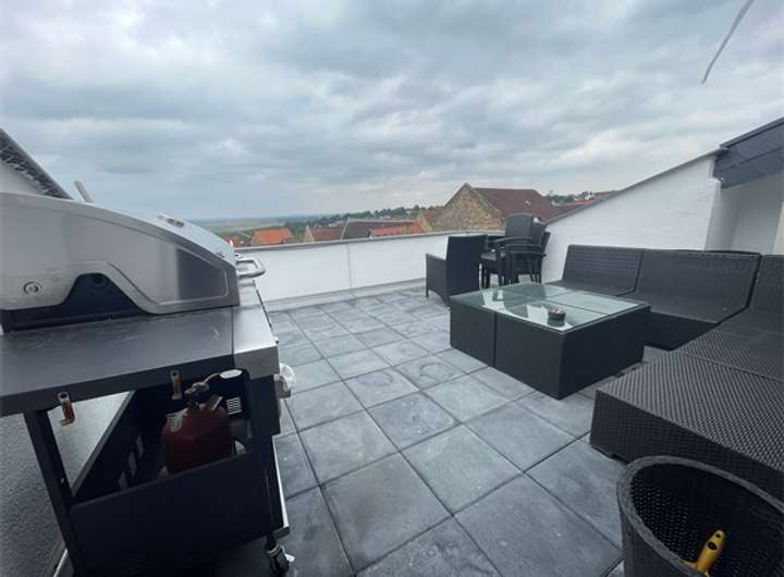 Das ausgebaute Dachgeschoss bietet eine lichtdurchflutete Maisonettewohnung mit moderner Ausstattung. Der Ausblick über die Fenster und die Dachterrasse sorgen für eine angenehme Atmosphäre und schöne Freiheitsgefühle.