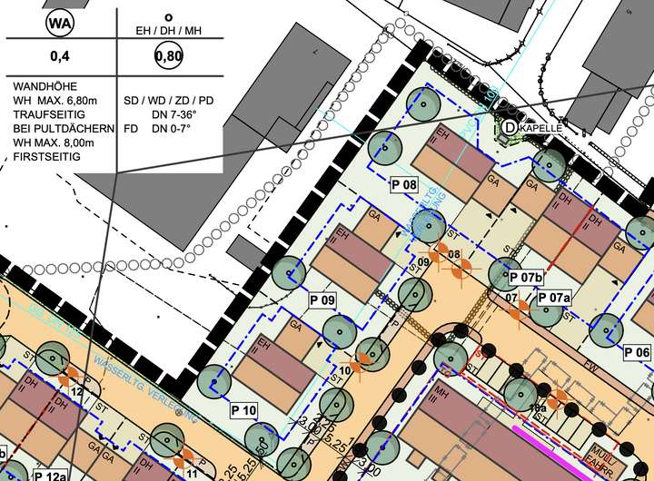 Wir verfügen hier über Parzellen für Einfamilienhäuser, Doppelhäuser und Mehrfamilienhäuser.