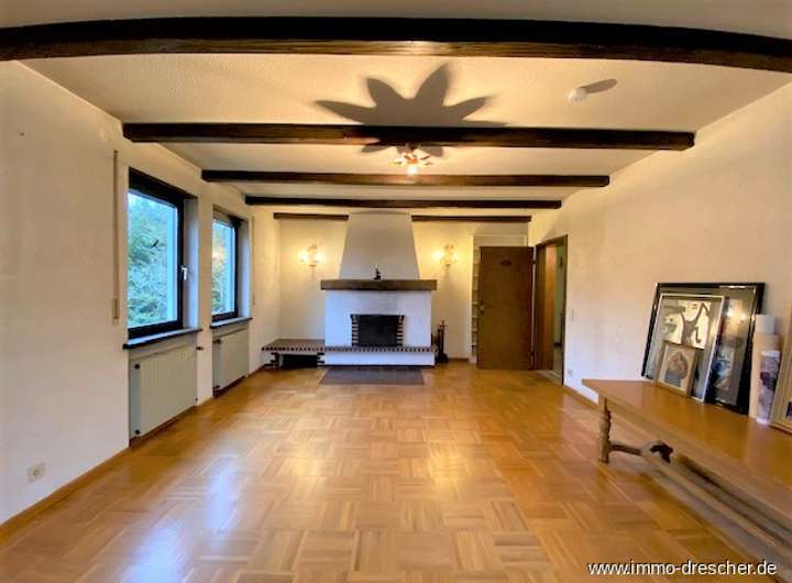 - Wohnzimmer mit Kamin und Zugang zur Terrasse