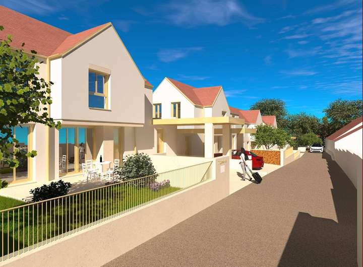 Wir freuen uns, 4 Reihenhäuser in unmittelbarer Nähe des Ortskerns in der Triftgasse in St. Margarethen verwirklichen zu können. In Zusammenarbeit mit Architekt DI Gasser, wird stilvoll auf die Gegebenheiten des Umfeldes Rücksicht genommen. Die Häuser bestehen aus einem Erd- und einem Obergeschoss. Das Kellergeschoss wird durch eine großzügige Lagerfläche sowie einem Technikraum im Erdgeschoss ersetzt, wodurch genügend Stauraum geboten wird. Bei der Ausstattung aller Reihenhäuser stehen Optik und Qualität im Vordergrund. Für jedes Haus wird die Leerverrohrung einer PV-Anlage automatisch errichtet. Weiters sind alle Häuser mit einem überdachten PKW-Stellplatz direkt vor dem Haus ausgestattet. Auf der eigenen Terrasse direkt vor dem Haus, können die Bewohner den Alltag gemütlich ausklingen lassen.