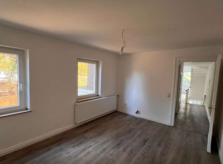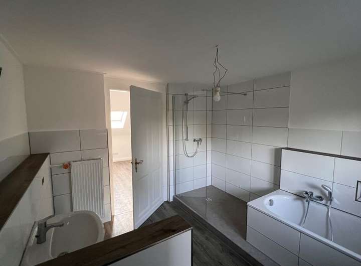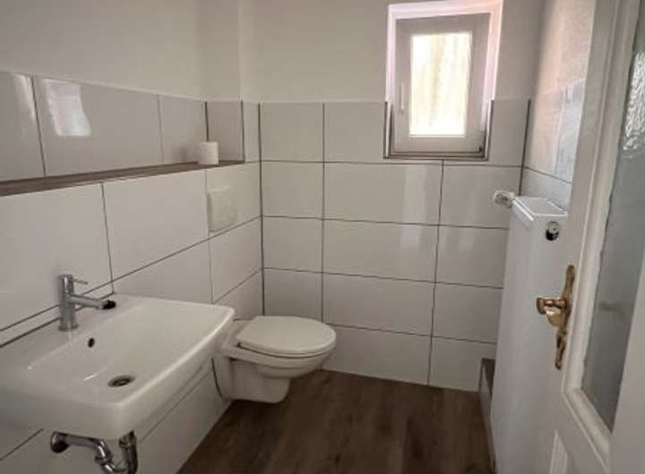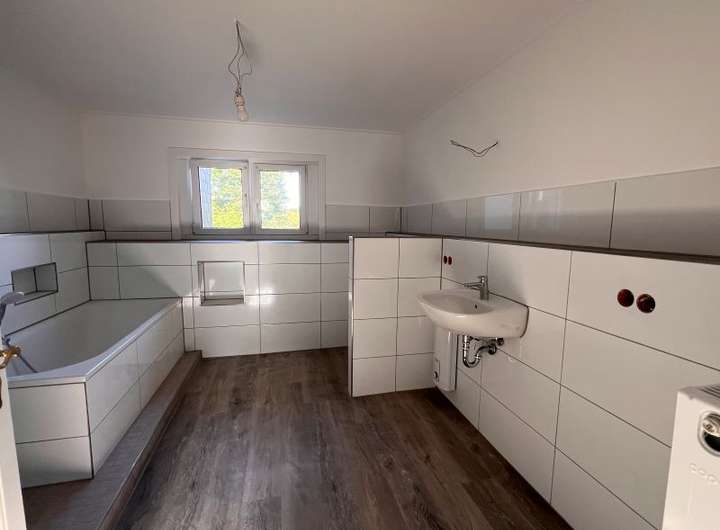 Die Wohnung wurde frisch komplett saniert und ausgestattet. Die Böden der Wohnung sind einheitlich mit modernem Vinylboden ausgelegt, die Bäder sind hell und weiß gefliest.