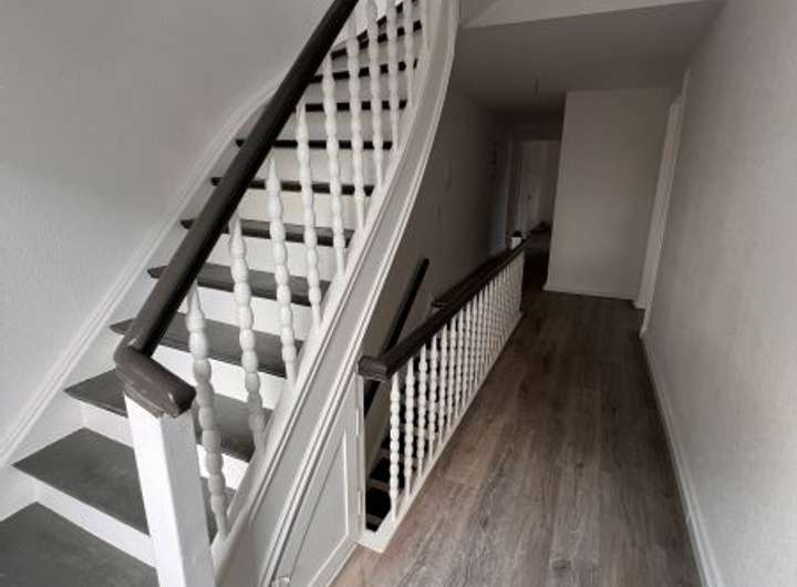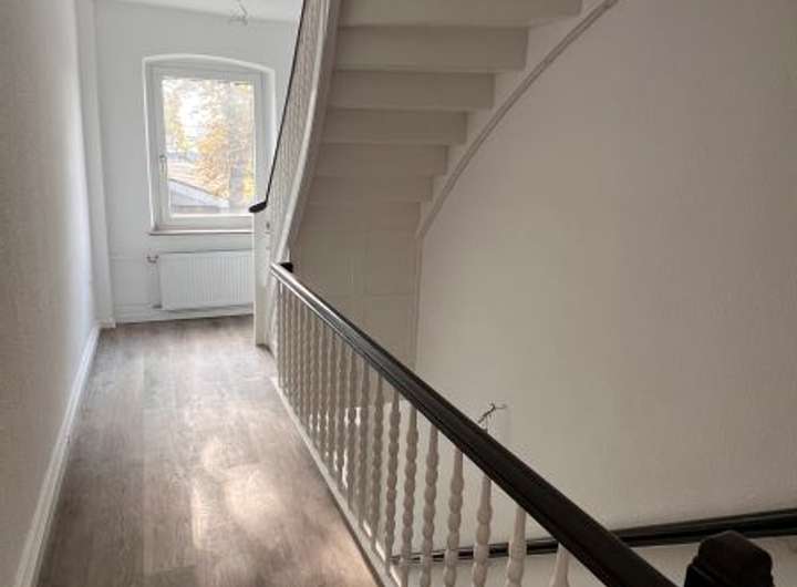 Über die Treppe im EG gelangen Sie in den großen Flur im 1. OG der Wohnung.