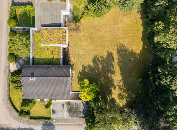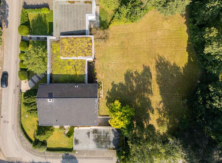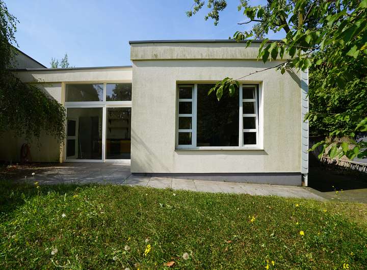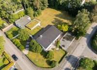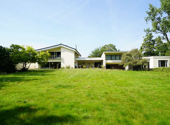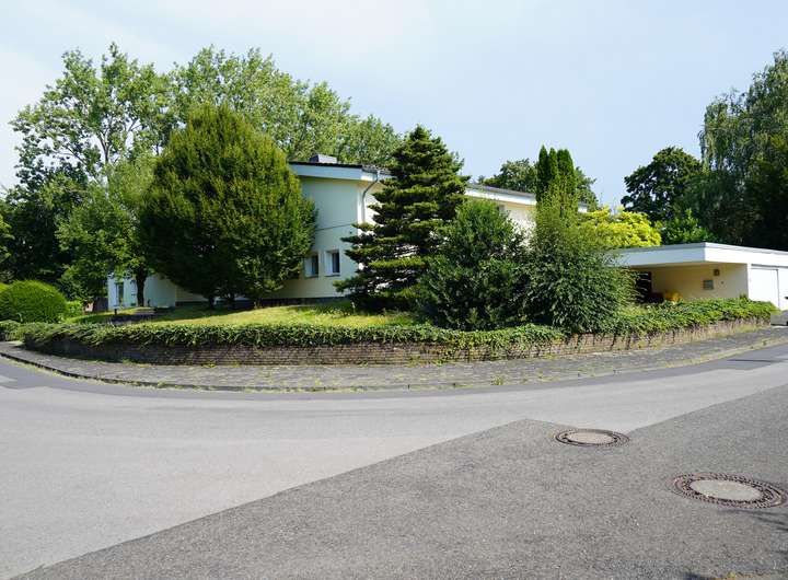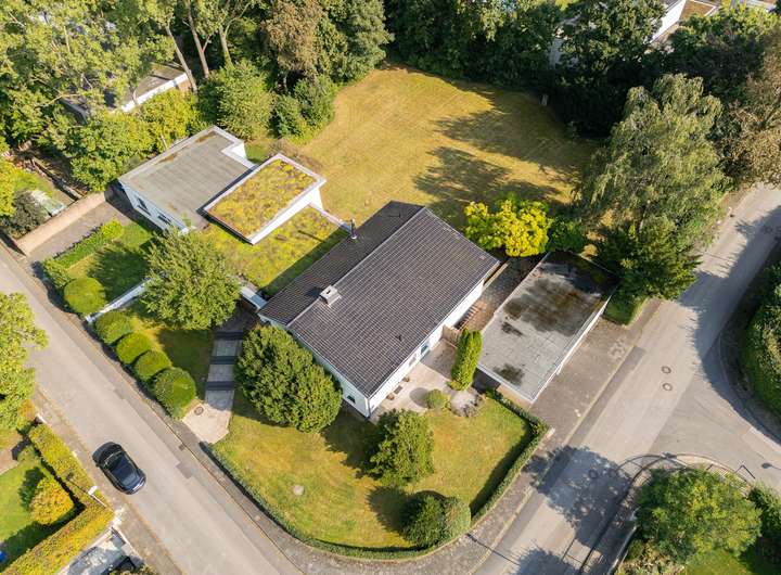 Das Grundstück ist aufgeteilt in zwei Flurstücke, der aufstehender Bungalow mit insgesamt ca. 500 m² Wohnfläche entstand in den 1960er Jahren.