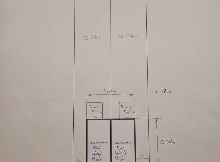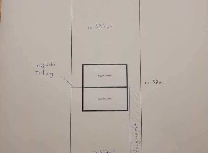 Grundstück für Doppelhaushälfte oder im ganzen für ein Einfamilienhaus (noch nicht geteilt).