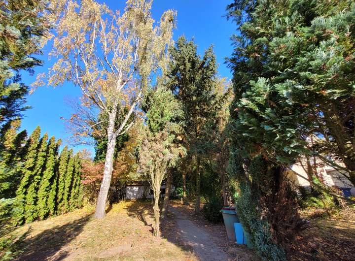 -aktuell Abriss vorhanden und diverse Bäume (Baurecht vor Baumrecht, das bedeutet alle Bäume im Baubereich + Zuwegung etc. dürfen gefällt werden)