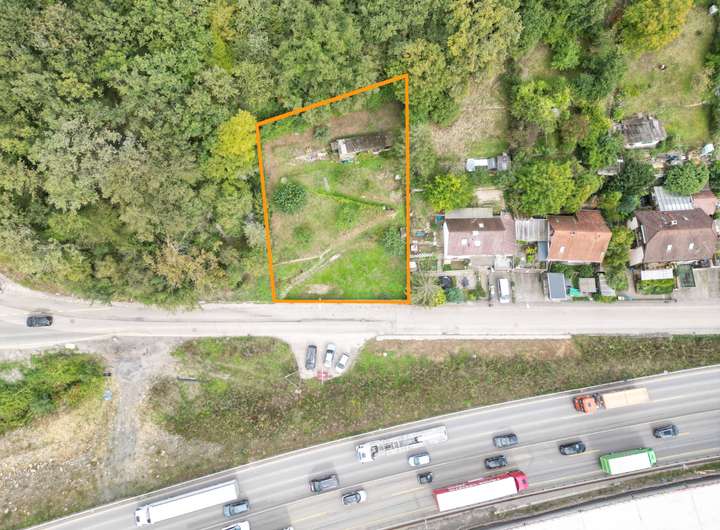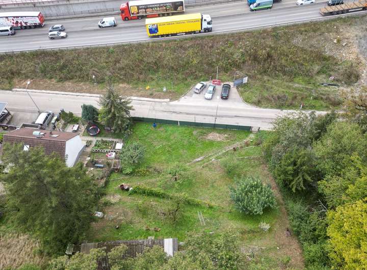 Genau an dieser Stelle befindet sich das Grundstück. Nach Abschluss der Baumaßnahmen an der A8 dürfte also an dieser Stelle eine Beeinträchtigung oder Lärmbelästigung durch die Autobahn Geschichte sein da sie an dieser Stelle durch eine begrünte Überdachung führt.