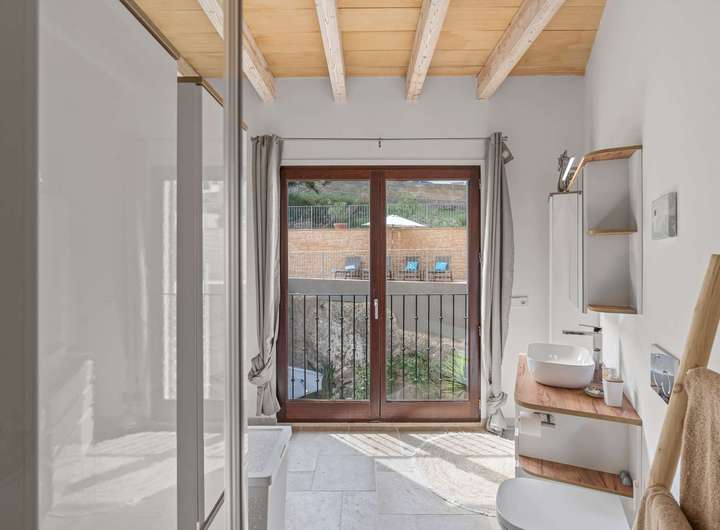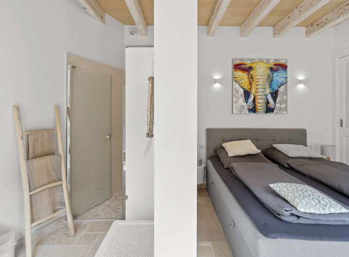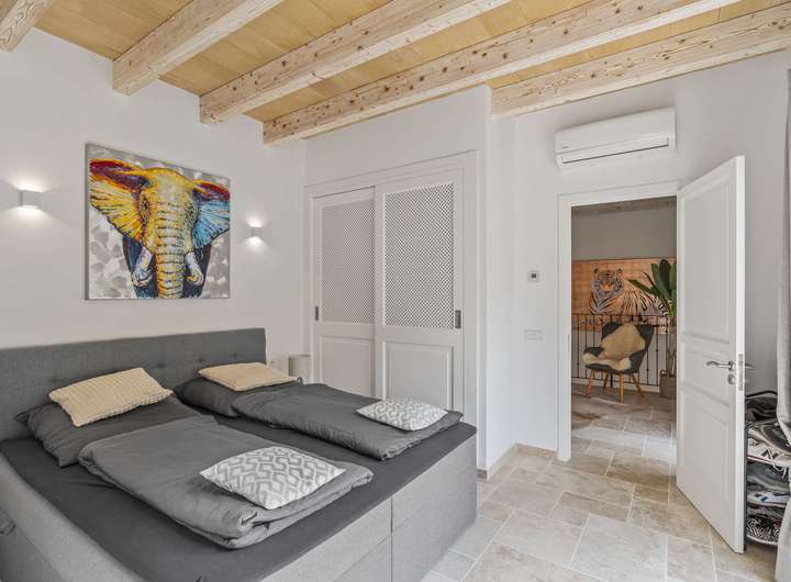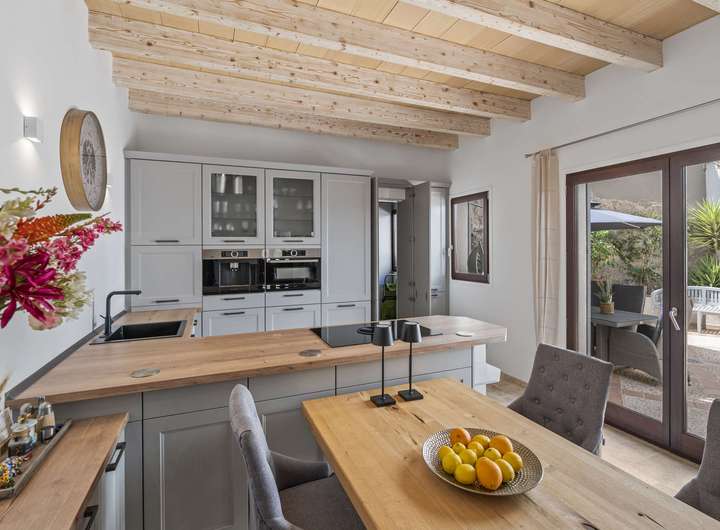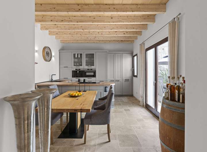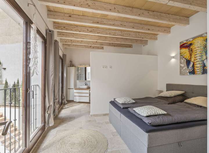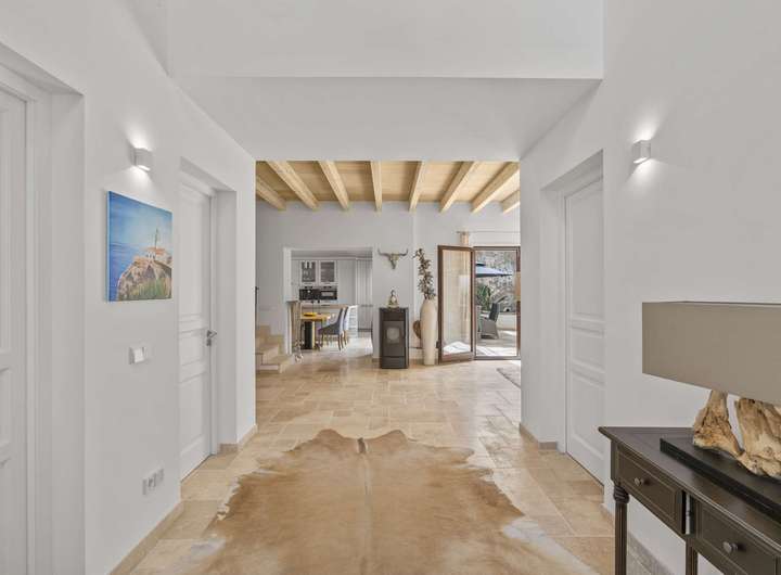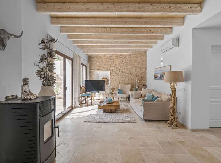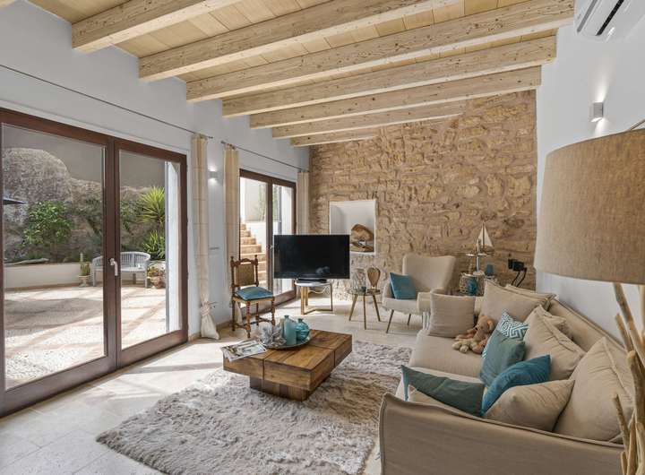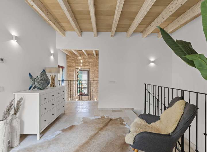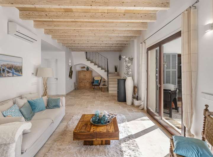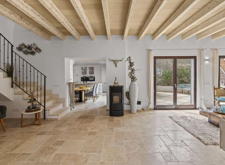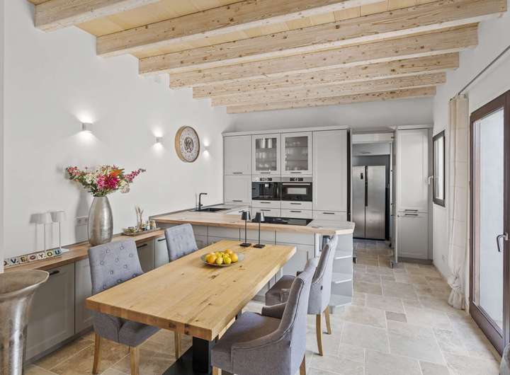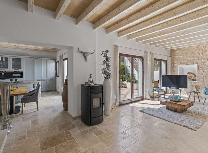 * Mallorquinisches Flair durch Holz-Deckenbalken und Steinverkleidungen der Wände