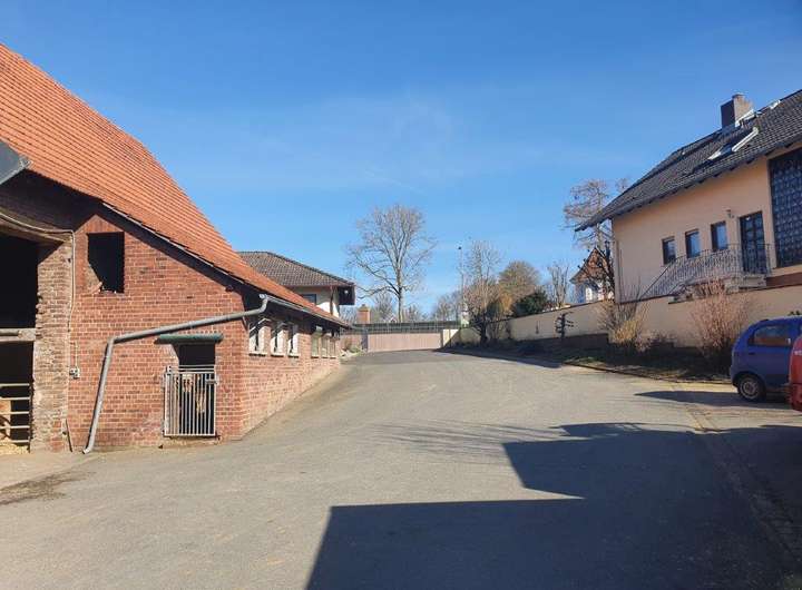 Auf diesem voll erschlossenen Baugrundstück befinden sich eine massiv gemauerte Scheune mit Ziegelsteinen, sowie carportähnliche Unterstände für landwirtschaftliche Fahrzeuge.