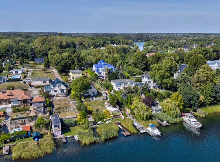 Wir freuen uns, Ihnen diese außergewöhnliche 3-geschossige Zweifamilien-Architektenvilla vorstellen zu dürfen, welche im Jahr 1997 massiv erbaut wurde und sich auf einem ca. 948 Quadratmeter großen Hanggrundstück direkt am malerischen Kalksee in Woltersdorf befindet. Dieses traumhafte Anwesen vereint luxuriöses Wohnen mit unmittelbarem privaten Zugang zu einer der schönsten Wasserlagen der Region.