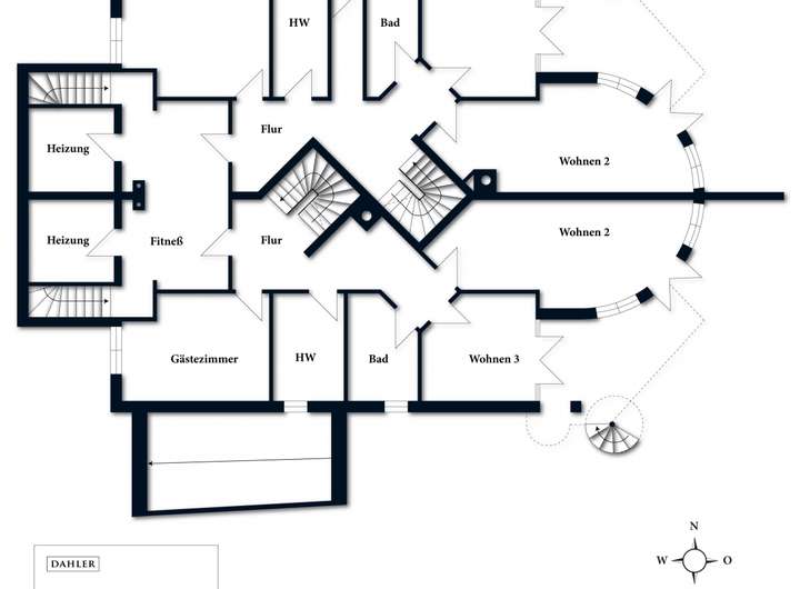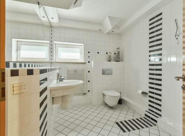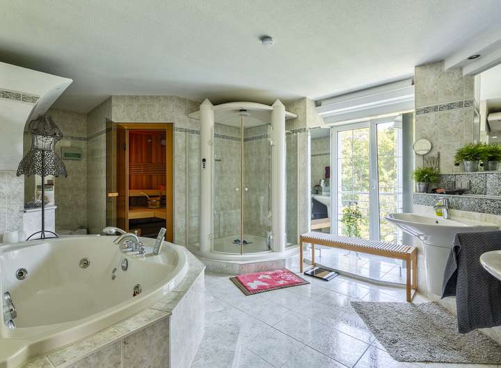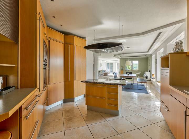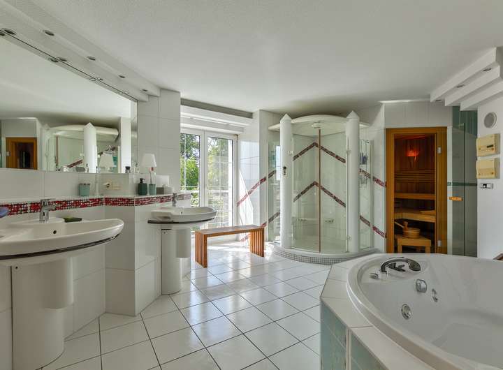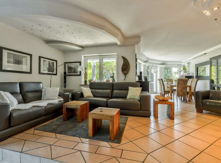 Die Zweifamilienhaus-Villa wurde mit hohem Komfort und Funktionalität geplant und gebaut. Nach der Zusammenlegung beider Haushälften verfügt das Haus über insgesamt 12 Zimmer, wobei jede Hälfte 6 Zimmer bietet. Die gesamte Wohnfläche beträgt großzügige ca. 626 Quadratmeter, aufgeteilt in je ca. 313 Quadratmeter pro Villenhälfte.